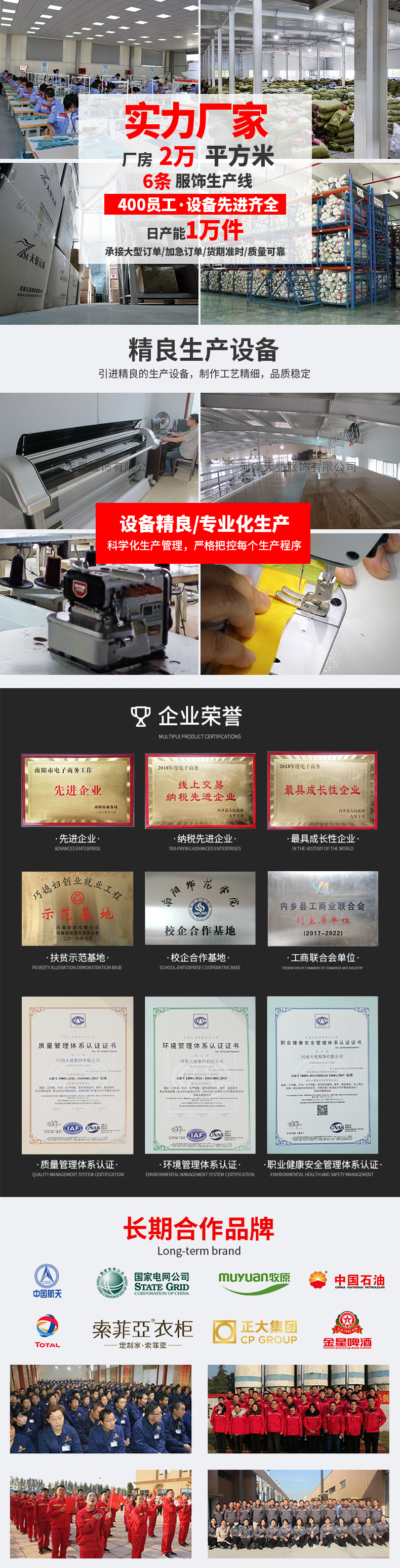 如果少數(shù)員工無法找到對應(yīng)的尺碼,可依據(jù)您提供的升高體重腰圍來制作,特體制作每件收取100元制作費(fèi)用。