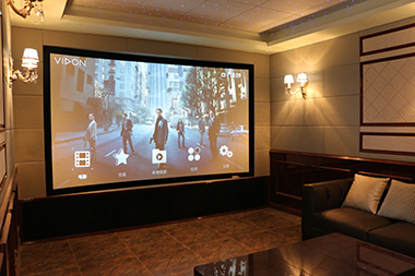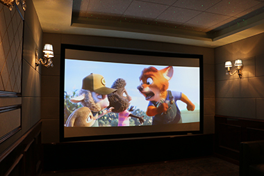 業(yè)主對影音需求很高,所以在地下室有一個專門的房間作為私人影院。我們采用了美國James 63FX入墻式揚聲器+1只James EMB1000低音炮組成5.1.4環(huán)繞音效,Marantz功放搭配威動在線影庫,營造了逼真的聲效,讓業(yè)主感受到身臨其境的影音效果,我們綜合業(yè)主對視頻畫面品質(zhì)的要求和預(yù)算,推薦使用了Espon TZ1000配合133寸JK透聲幕布。