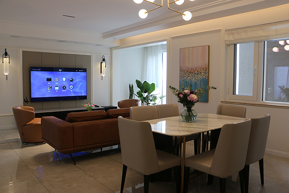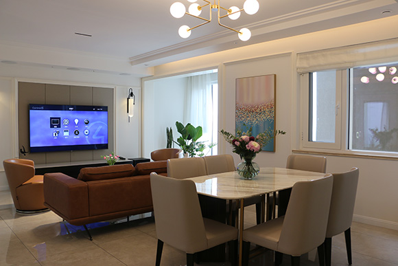 項(xiàng)目以全宅智能化的方式來(lái)設(shè)計(jì)這個(gè)展廳,采用美國(guó)Control4總線控制系統(tǒng),?EA-5作為控制主機(jī),配合Control4總線玻璃場(chǎng)景面板,來(lái)搭建整個(gè)智能家居控制系統(tǒng)。入戶、客廳、餐廳、書房、主臥室、次臥室、兒童房、廚房八個(gè)區(qū)域的智能控制。