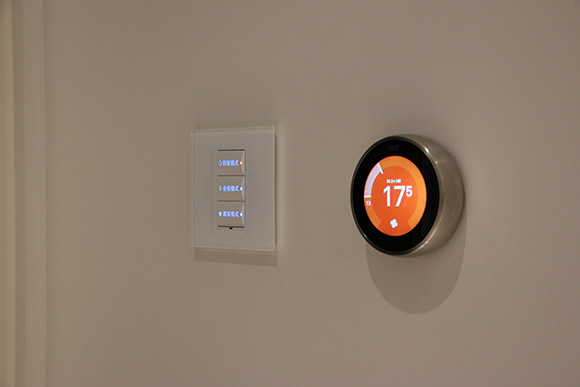 ? ? ?在入戶門口,設(shè)置了一個(gè)總線場(chǎng)景面板,設(shè)置了回家模式,會(huì)客模式,離家模式。