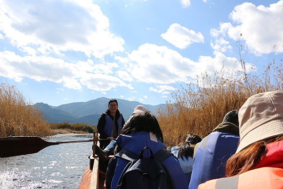 蘆葦、島嶼間,乘船在湖里慢悠悠劃蕩