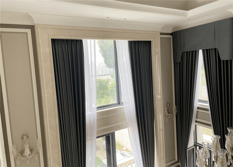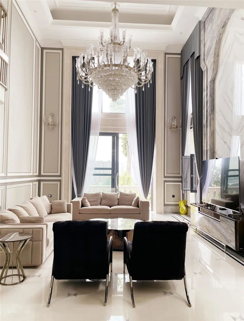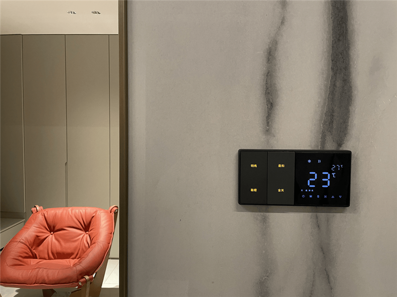 業(yè)主家里客廳、餐廳、臥室的窗簾全部是智能控制的,項(xiàng)目共使用了25套雙軌,內(nèi)外兩層,紗簾與布簾都可以分開操作,設(shè)計(jì)師設(shè)置成日落后臥室窗簾自動關(guān)閉,早上按“晨起”時(shí),臥室布簾輕輕打開,在任何地方,家中的所有窗簾都可以通過墻面開關(guān)、觸摸屏或是手機(jī)來控制。